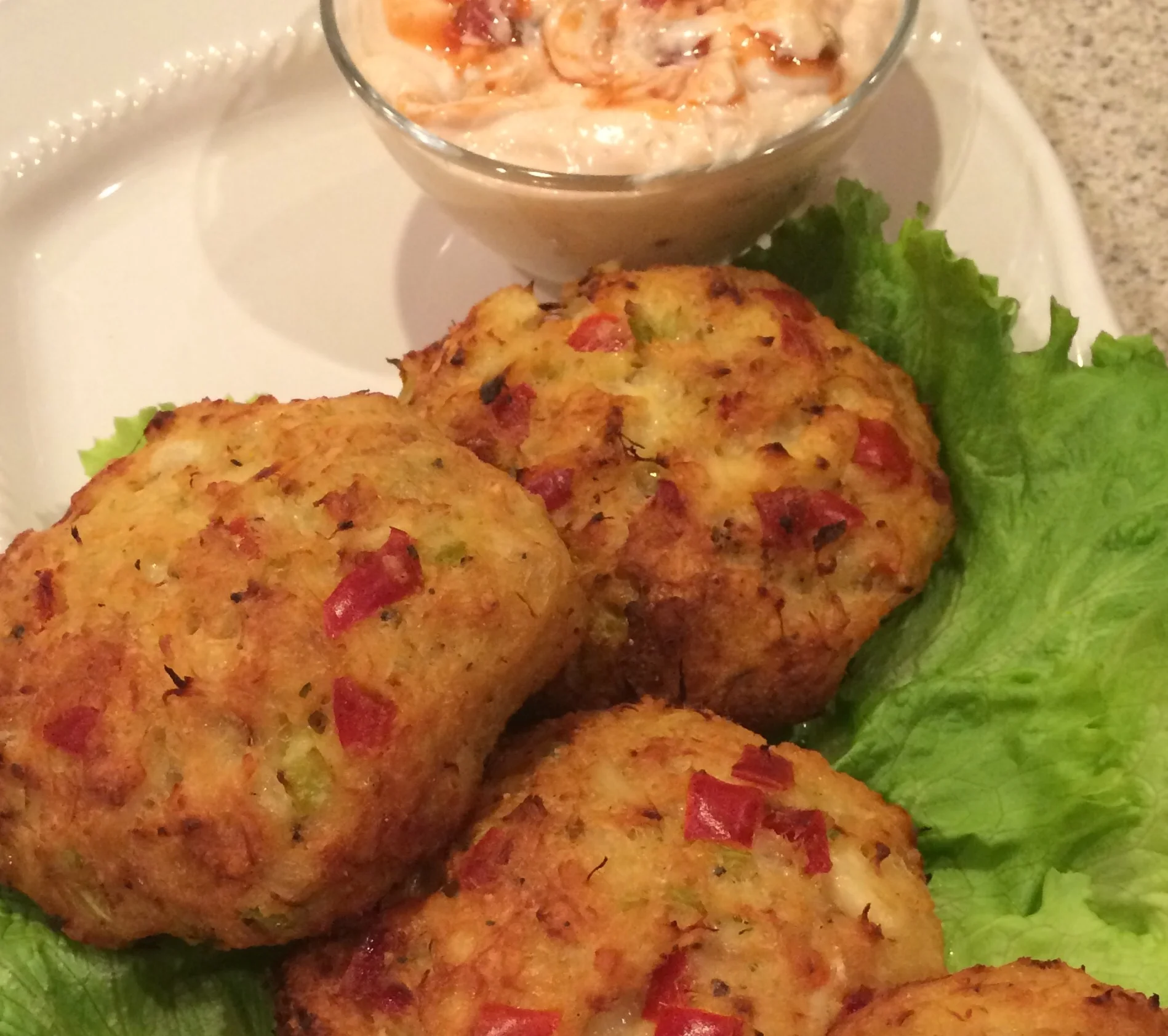 Grease cookie sheet with cooking spray. Place crab cakes on cookie sheet, spray crab cakes with cooking spray, and bake for 20 minutes, or until golden brown. Serve with Peach Salsa Dipping Sauce