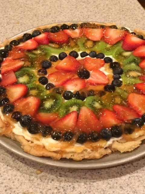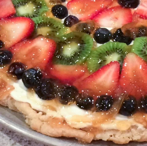 Are you ready to try this tasty dessert pizza recipe? It is easy and flavorful; it is fun to make and can be made any time of year in whatever design you desire, using whatever fruit is available.