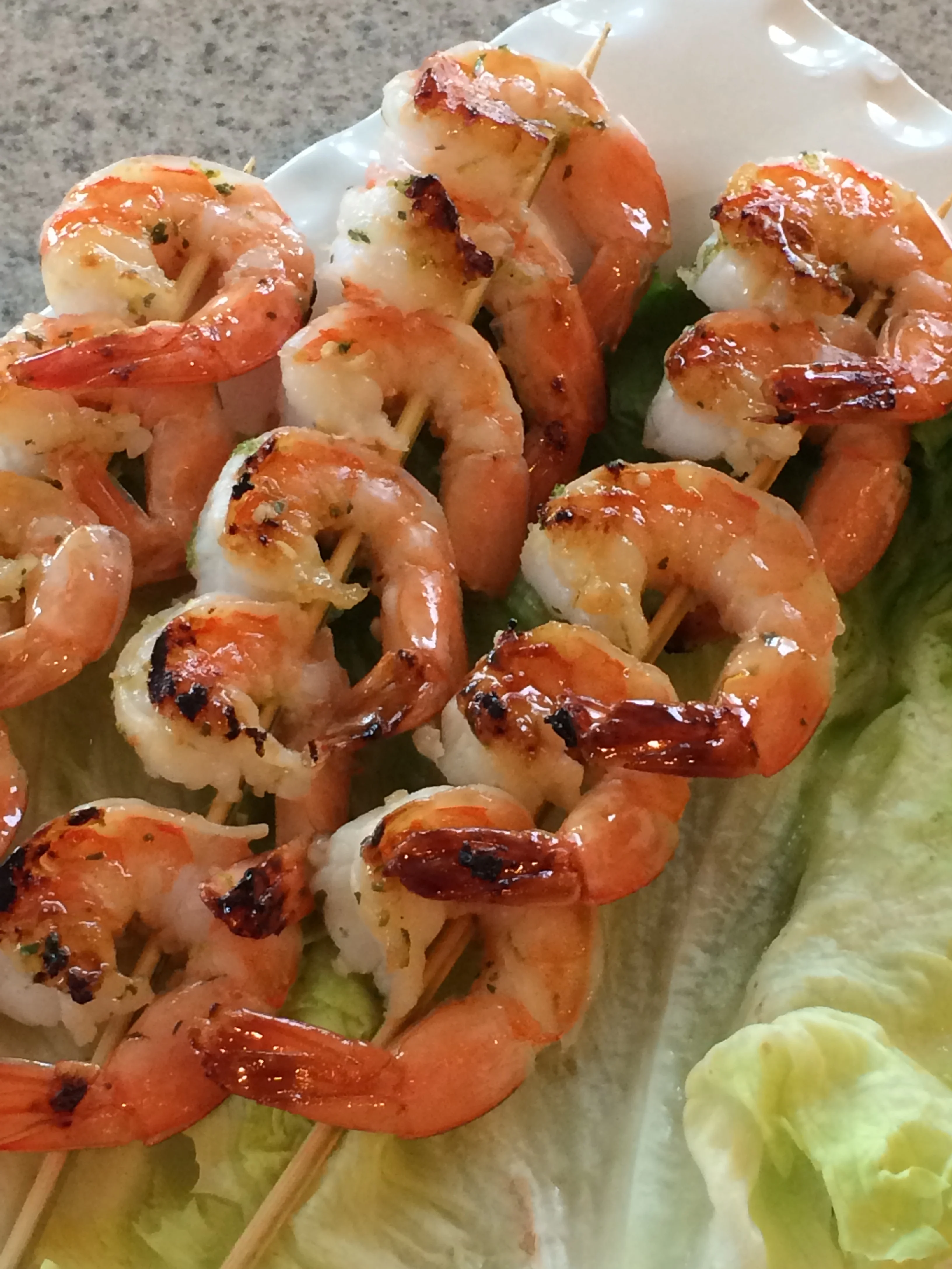 Spray grill lightly with cooking spray. Turn on grill to high, then down to low when ready to cook. Meanwhile, skewer shrimp onto wooden skewers. (I find it is easier to grill shrimp this way). Brush honey-lime mixture onto shrimp. Put shrimp onto grill, and cook for only a few minutes on each side, until shrimp turn pink (If using fresh shrimp). For frozen cooked shrimp, cook for a few minutes on each side. Serve on a pretty platter with lettuce, and you have an easy appetizer, lunch, or dinner.