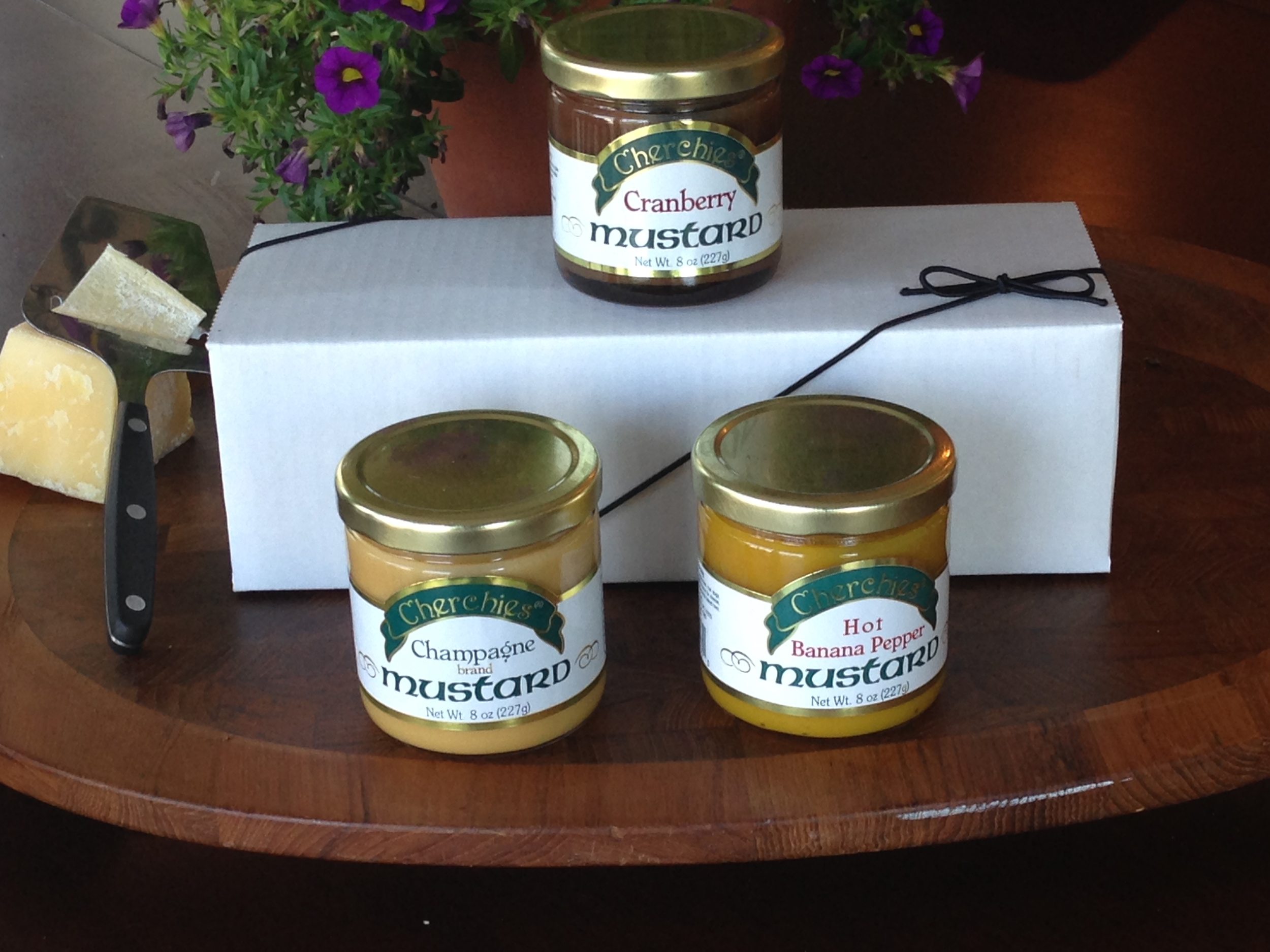 Since 1978, our award-winning mustards have been spicing up kitchens around the world. Our signature mustard and most popular is our Cherchies® Champagne Mustard, but we also have two newer mustards, our Cherchies® Hot Banana Pepper Mustard and our Cherchies® Cranberry Mustard.