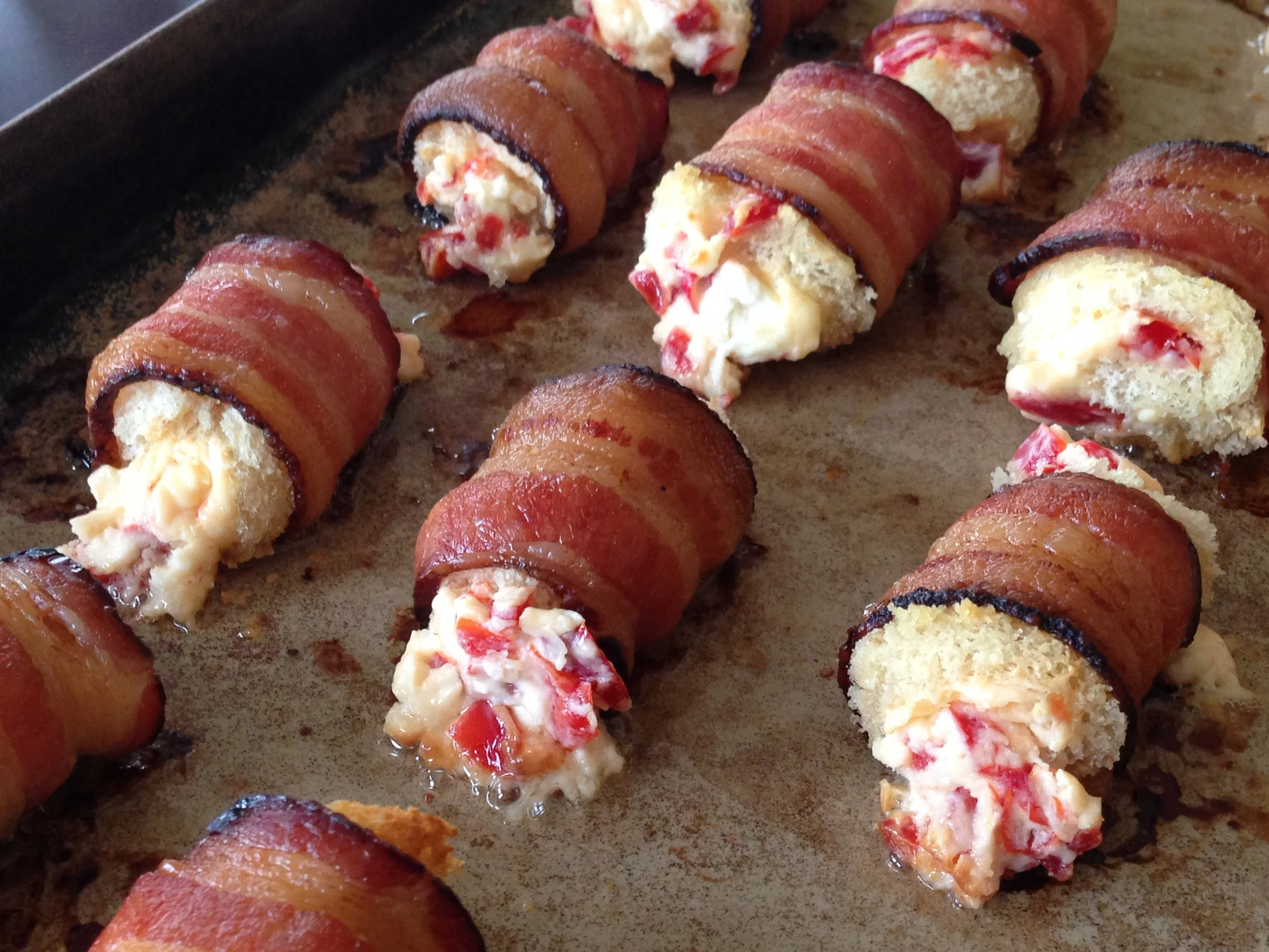 Place bacon rolls on baking sheet and bake in oven for 350 degrees until bacon is done.