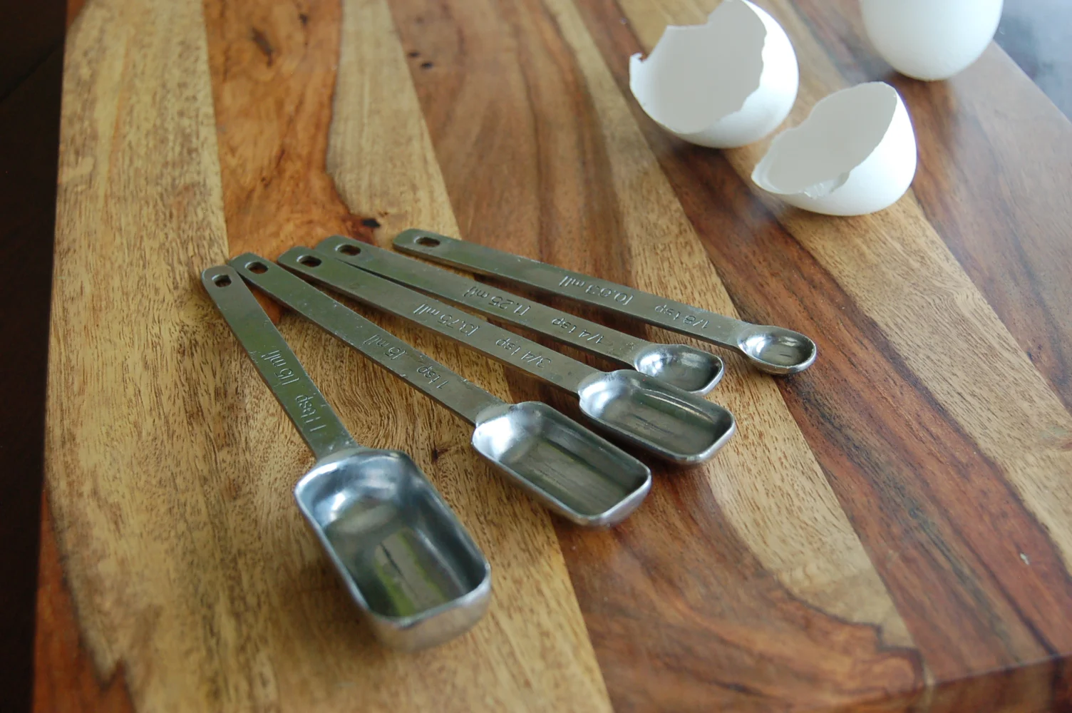 For smaller amounts of dry, solid, or liquid ingredients, use measuring spoons (teaspoons, Tablespoons, or less) to measure.