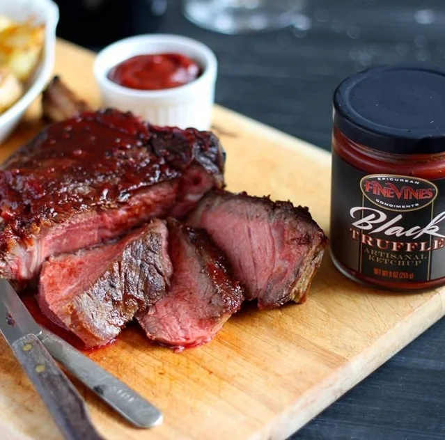 Truffles and steak are a perfect match, but steak and ketchup? Absolutely! (especially if the ketchup is infused with French Truffles). Fine Vines® Black Truffle Artisanal Ketchup is the perfect glaze or dipping sauce for fries, burgers, and even steak!