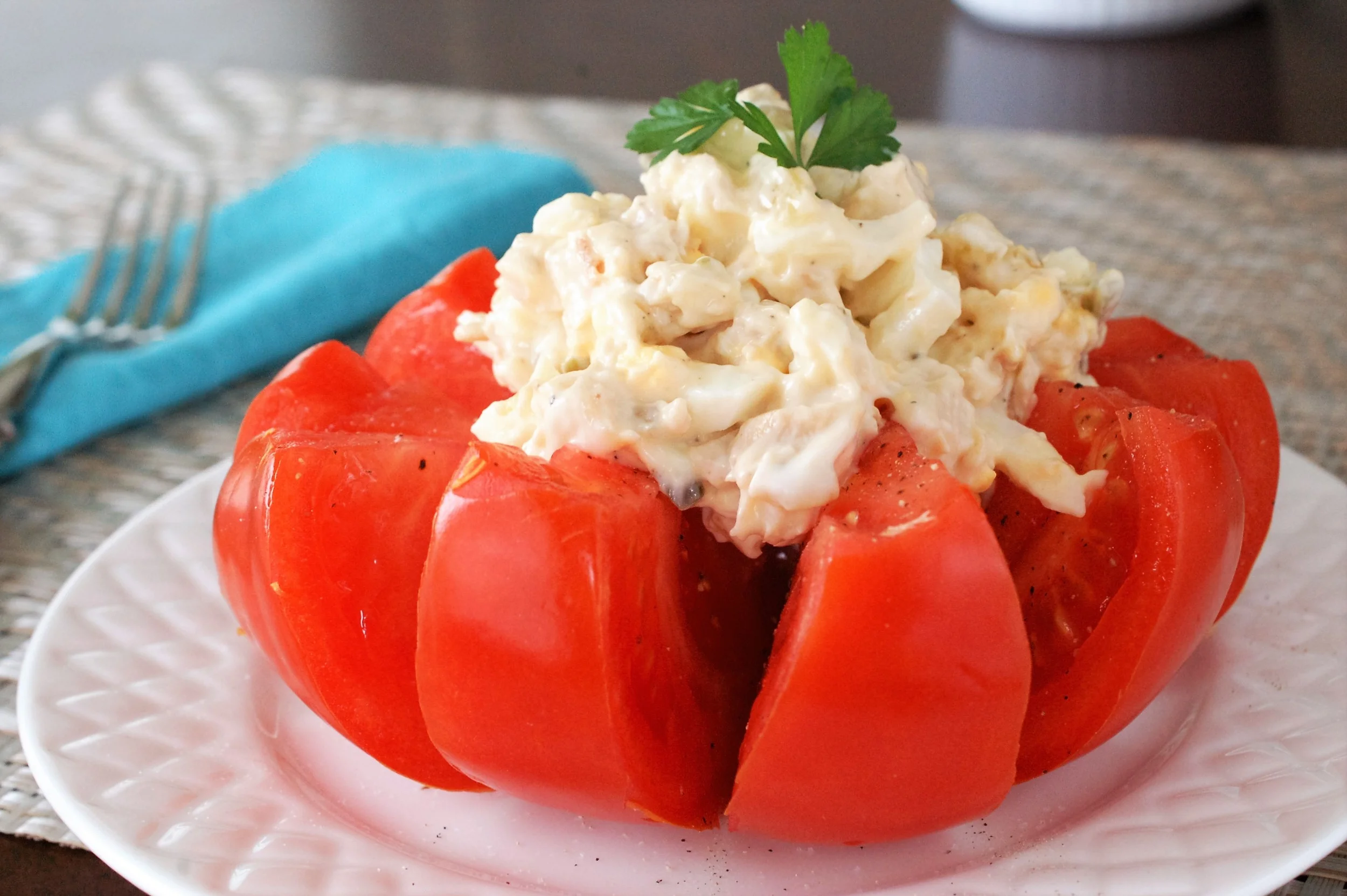 Summer is approaching, and with that will be a plethora of juicy tomatoes.  I love ripe juicy tomatoes by themselves, but I also love them filled with a creamy salad.  This easy "bloomin" tomato chicken salad is perfect for a ladies luncheon, brunch, or a fancy treat for yourself! Even kiddos will love this recipe.