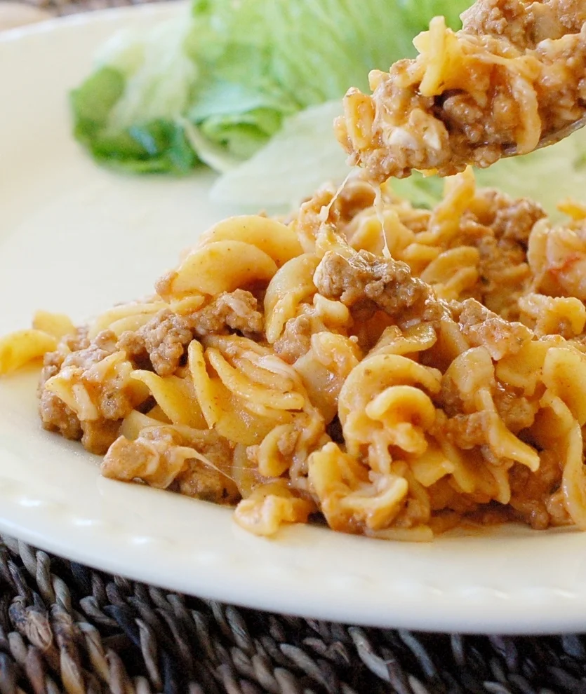 Want to know a secret? I was a terrible cook when I first got married. I could bake, but dinner was a challenge:) Funny to think that the only thing I could cook well when I first got married was Beefaroni by Hamburger Helper (shameful, I know). I think it was called Cheeseburger Macaroni.